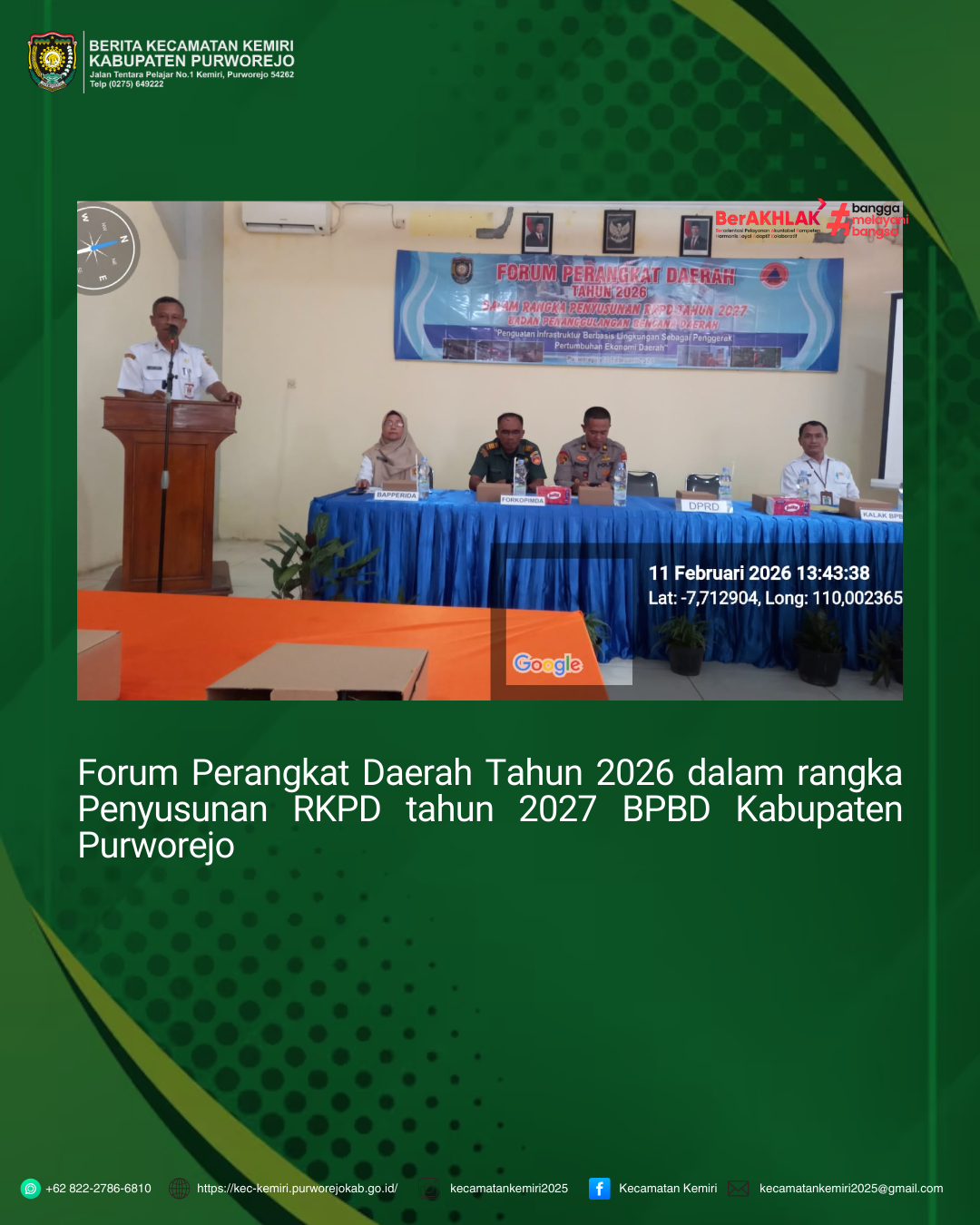- Forum Perangkat Daerah Tahun 2026 dalam rangka Penyusunan RKPD tahun 2027 BPBD Kabupaten Purworejo