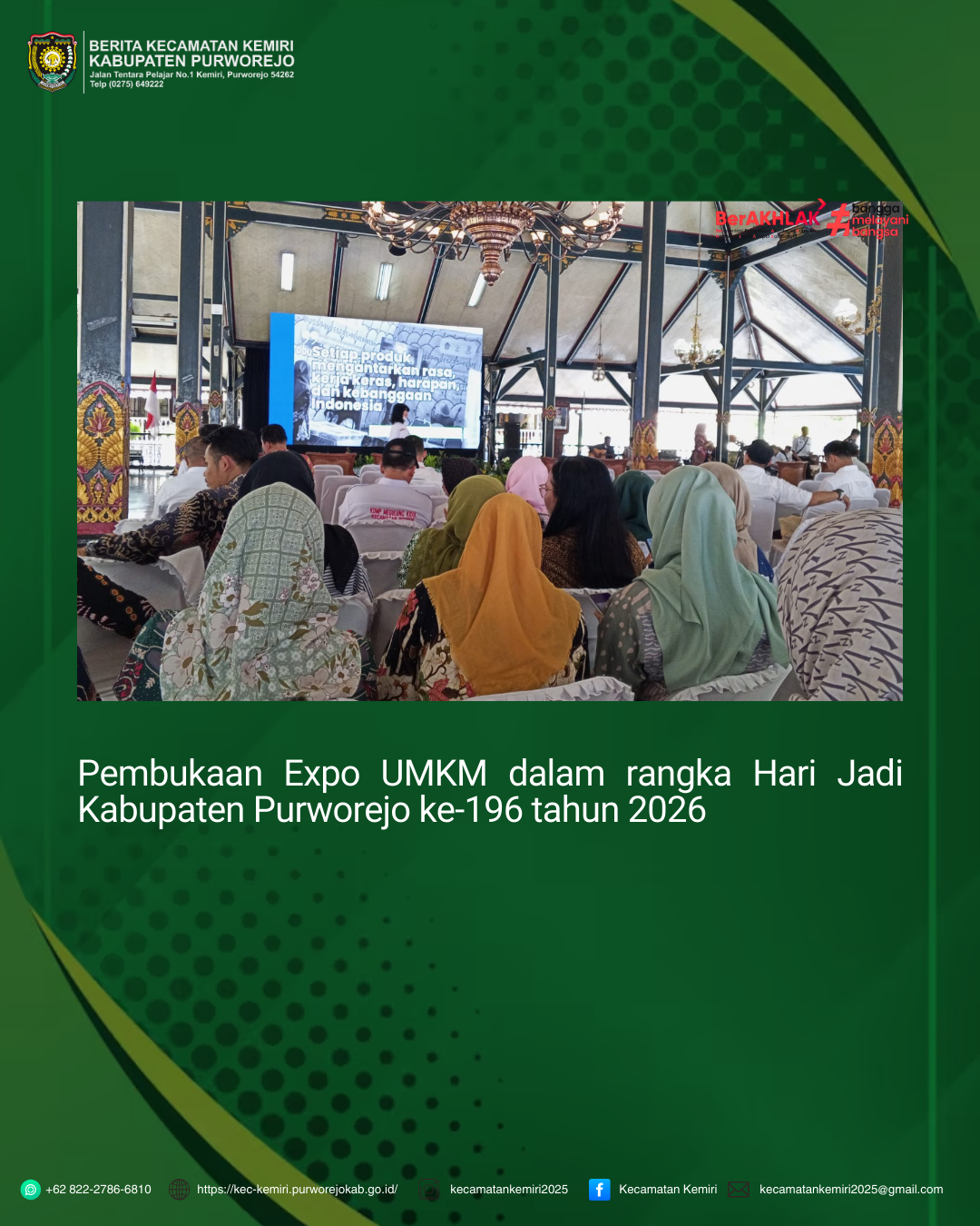 - Pembukaan Expo UMKM dalam rangka Hari Jadi Kabupaten Purworejo ke-196 tahun 2026
