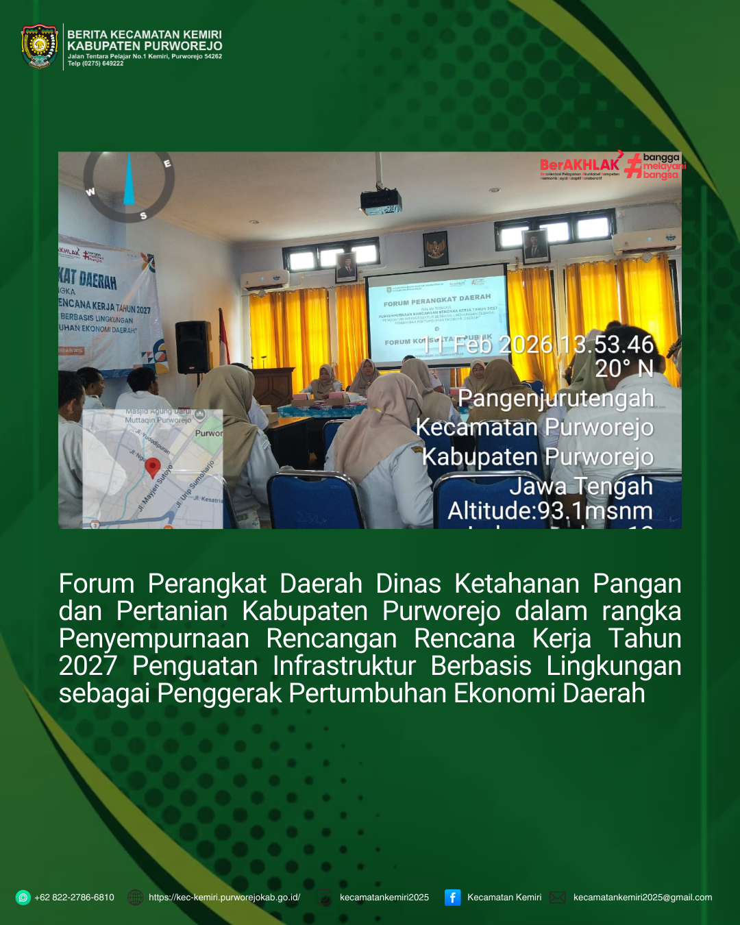 - Forum Perangkat Daerah Dinas Ketahanan Pangan dan Pertanian Kabupaten Purworejo dalam rangka Penyempurnaan Rencangan Rencana Kerja Tahun 2027 Penguatan Infrastruktur Berbasis Lingkungan sebagai Pengge