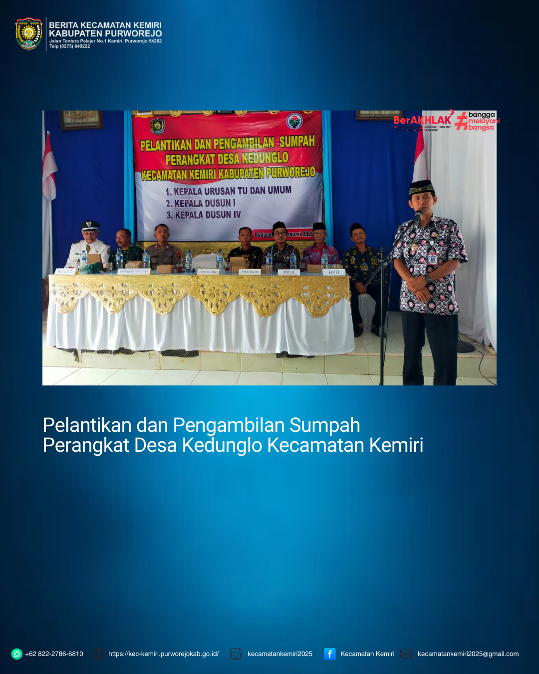 - Pelantikan dan Pengambilan Sumpah Perangkat Desa Kedunglo Kecamatan Kemiri