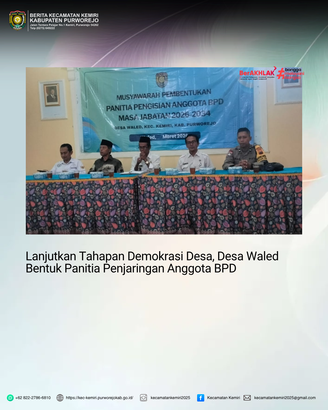 - Sosialisasi dan Pembentukan Panitia Pengisian BPD Desa Waled